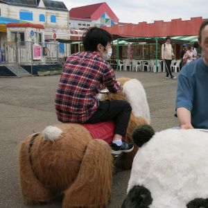 さまざまな利用者さんが、それぞれの方法で遊園地の雰囲気を味わっていました。