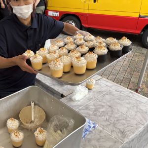 飲食ブースでは、たこ焼きやプリン、コーヒーゼリーが人気。
