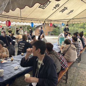りんごジュースやコーヒーをゆっくり味わいながら、屋外のテント席でくつろぐ時間も好評でした。