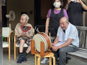 太鼓好きのご利用者が叩く和太鼓の音が、