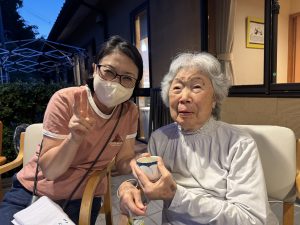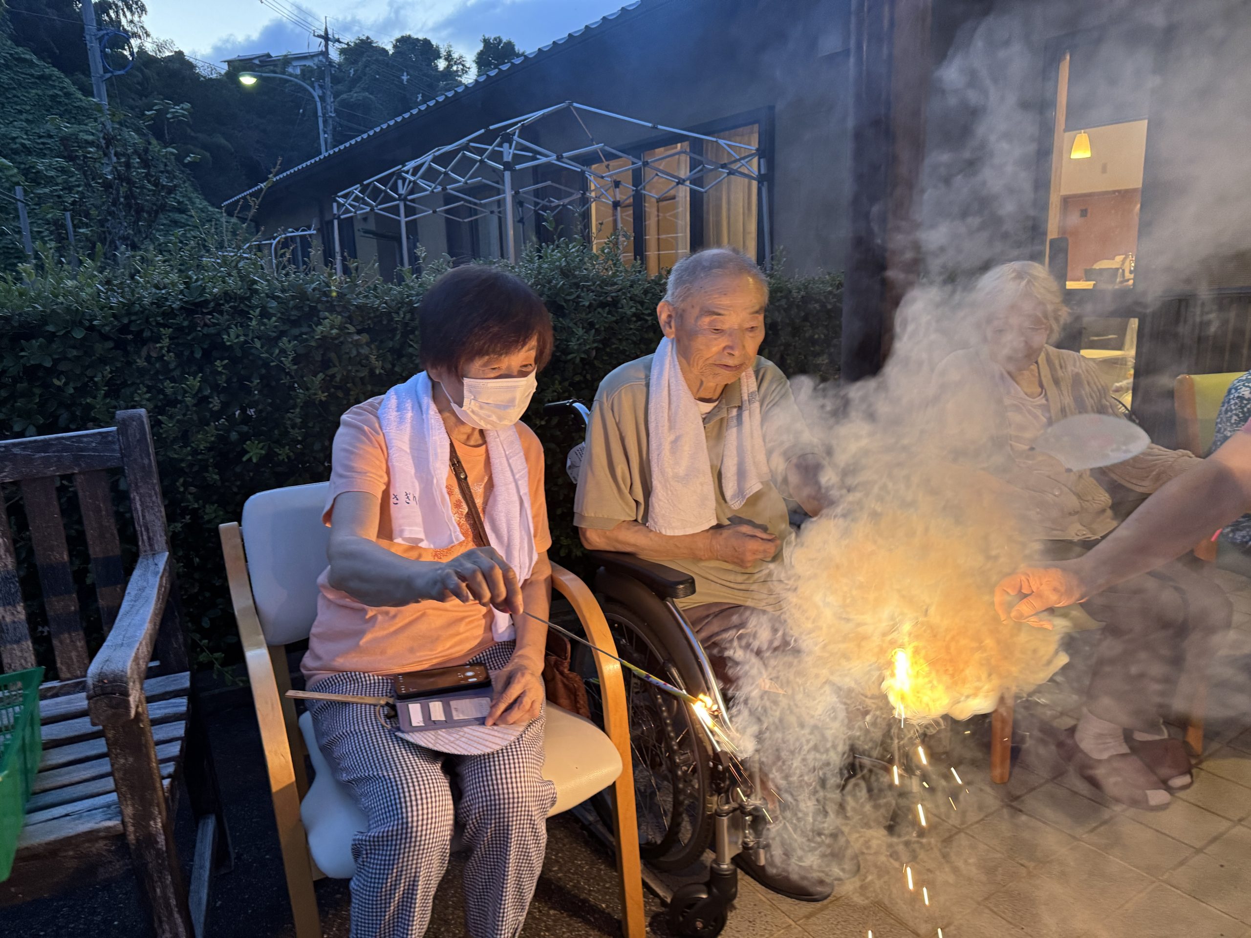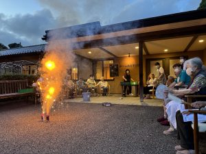 花火の間から、ご利用者の笑顔が見られ