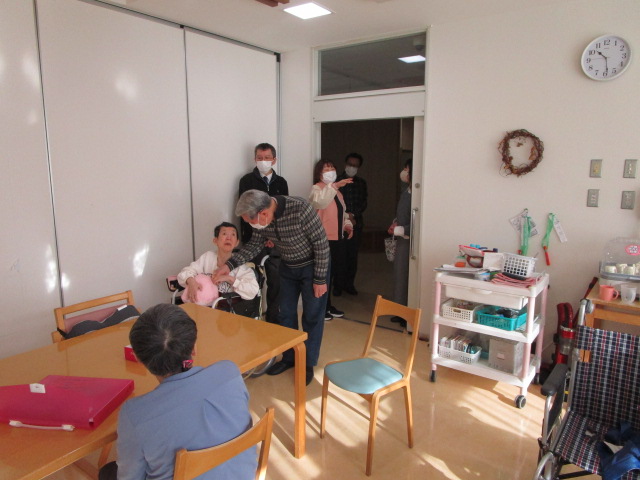 会議では施設内の見学を行った後、ふじのき寮の事業内容や日頃の取り組みについて説明させて